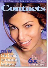 Published biannually for seven years, Contacts reached consumers in the offices of optometrists and other eye care professionals. The publication enlightened prospective wearers about exciting options in contact lenses, such as colors, continuous wear, daily disposables and more.